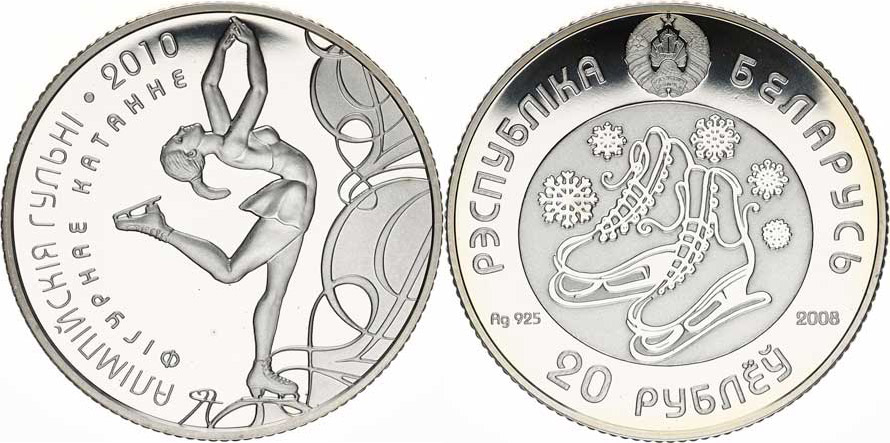 Bělorusko, 20 Rubl 2008 - OH 2010, krasobruslení KM 185 Ag 925 31,
