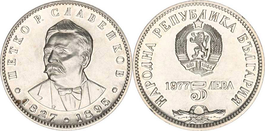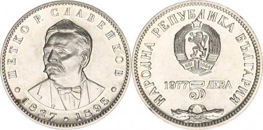 Bulharsko, 5 Leva 1977 - Petko Slavejkov KM 99