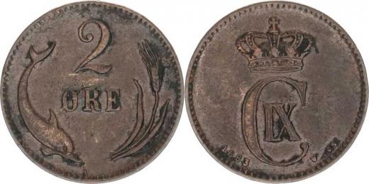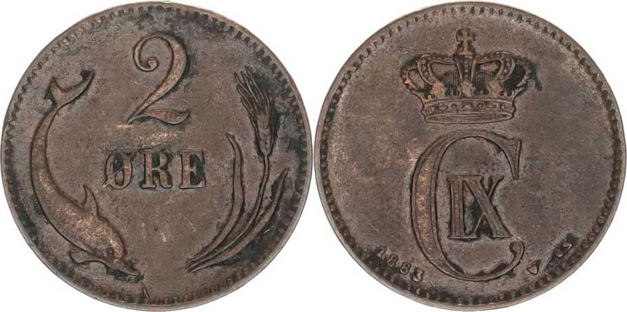 Dánsko, Christian IX.(1863-1906), 2 Ore 1883 CS KM 793.1, tém.