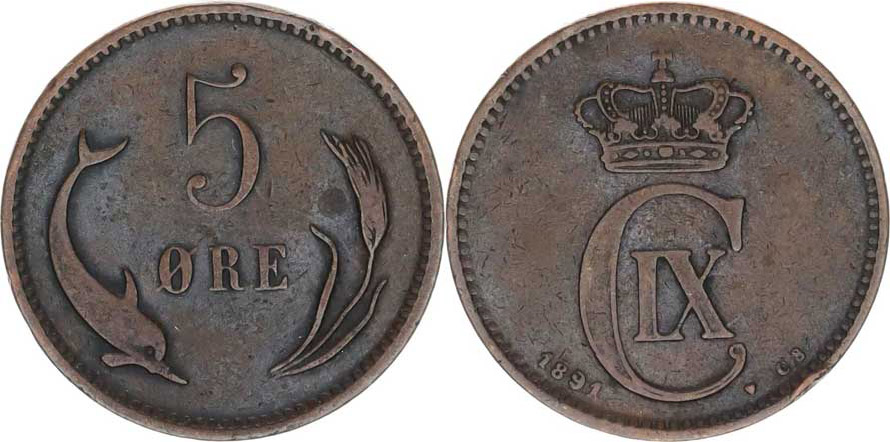 Dánsko, Christian IX.(1863-1906), 5 Ore 1891 CS KM 794.1, hr.