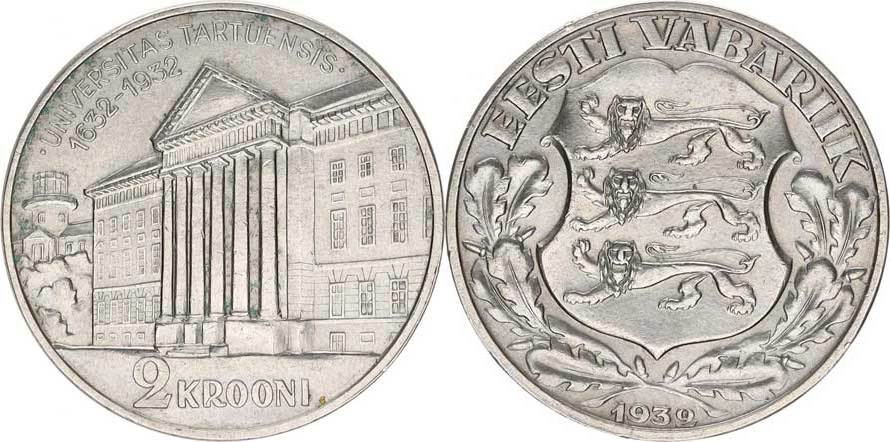 Estonsko, 2 Krooni 1932 - Univerzita v Tartu KM 13