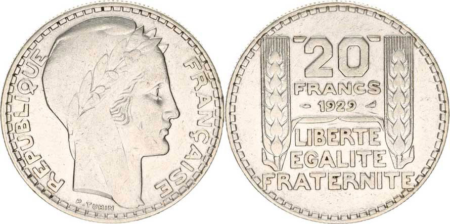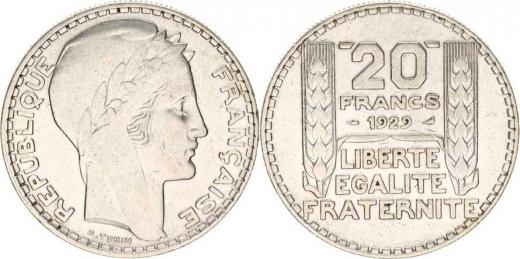 Francie, Třetí republika (1871-1940), 20 Francs 1929 KM 879 Ag 680 19,923g