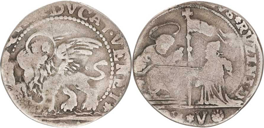 Itálie-Benátky, Carlo Ruzzini (1732-1735), 1/2 Ducato 1732, Lev svatého Marka vlevo / Dóže klečící