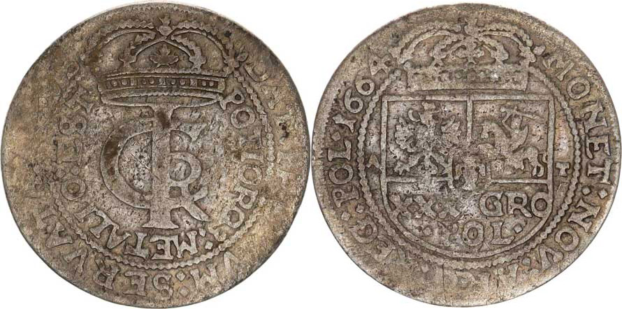 Polsko, Jan Kazimír (1649-1668), XXX Groš (zlotowka) 1664 AT, Bydgošč-Tymf Kop. III/121/3;