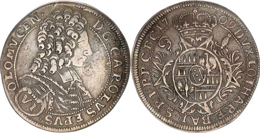 Olomouc, Karel III. Lotrinský (1695-1711), VI kr. 1709 S-V 548 (B2/D1) var. za tečka za OLOMVCEN