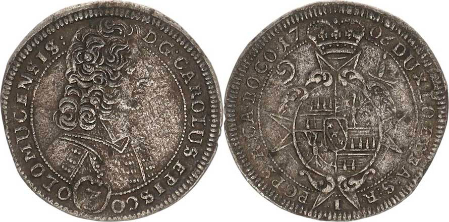 Olomouc, Karel III. Lotrinský (1695-1711), 3 kr. 1706 I S-V 542 B3/B2 var. dvojtečka za OLOMUCENSIS