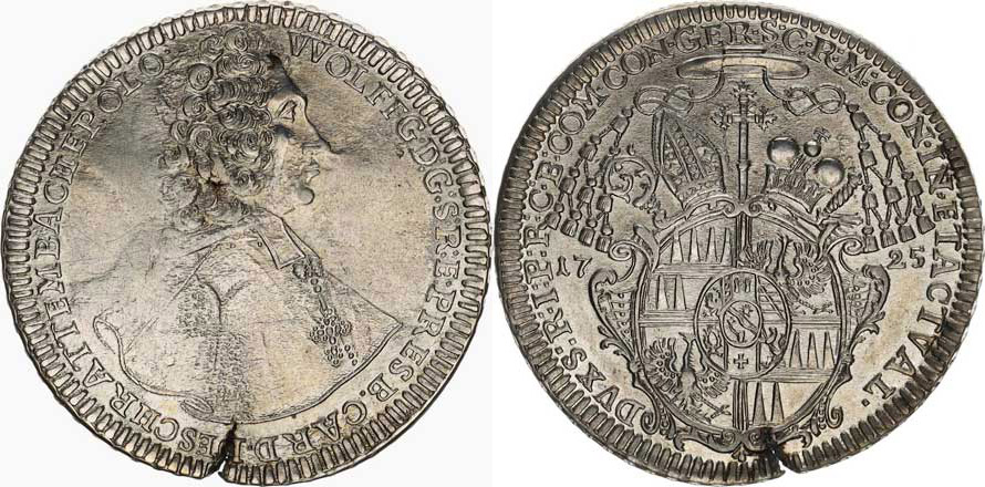 Olomouc, Wolfgang Schrattenbach (1711-1738), Tolar 1725 SV 750, naprasklý stř. ražbou