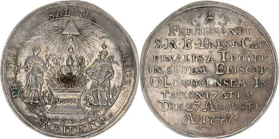 Olomouc, Ferdinand Troyer (1745-1758), Medaile intronisační 1747, malá Ag 27 mm Taul 214 "R"