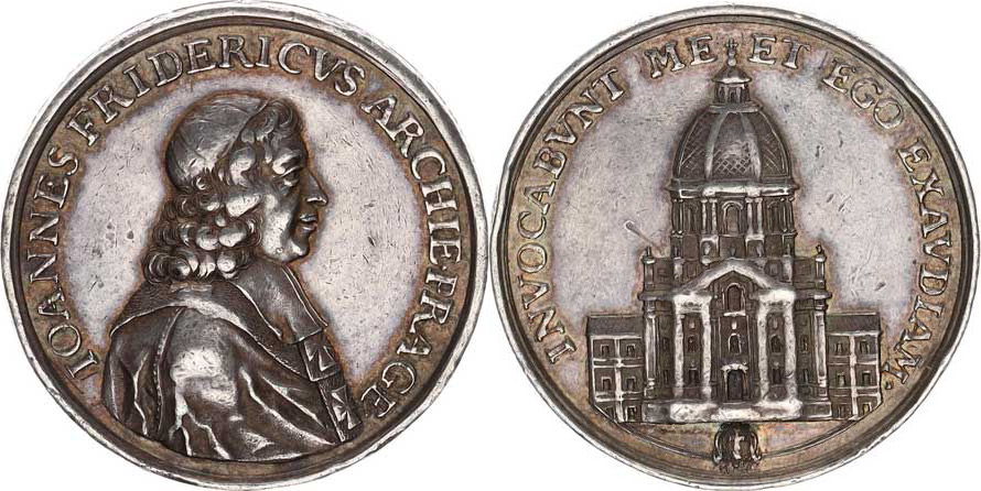 Praha - arcib., Jan Bedřich z Valdštejna (1675-1694), Ag medaile 1688, na posvěcení chrámu sv. Fran