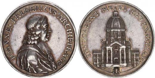 Ag medaile 1688, na posvěcení chrámu sv. Františka z Assisi, A: P oprsí arcibiskupa zprava, opis / R: Chrám, opis Ag 33 mm 21,715 g Don. 4635; Přibil 380, hr., ryska