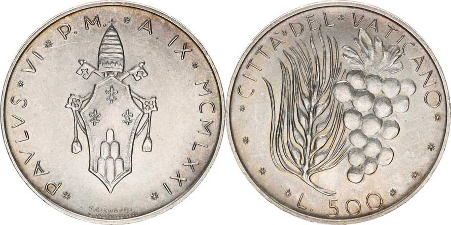 Vatikán-Papežský stát, Pavel VI.(1963-1978), 500 Lire 1971 rok IX. Y.123