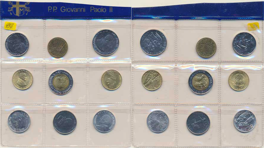 Vatikán-Papežský stát, Jan Pavel II.(1978-2005), Upomínková sada vatikán. mincí - 5,10,20,50,100 Li