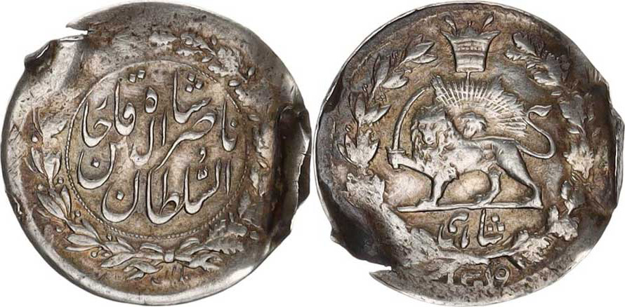 Irán, Nasir al-Din Shah (AH 1264-1313/1848-96 AD), Shahi Sefid AH 13..? Ag KM 889 / 890 0,929 g