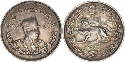 5000 Dinars /5 Kran/ SH 1306 (1927 AH), poprsí v uniformě KM 1106 Ag 900 23,025 g