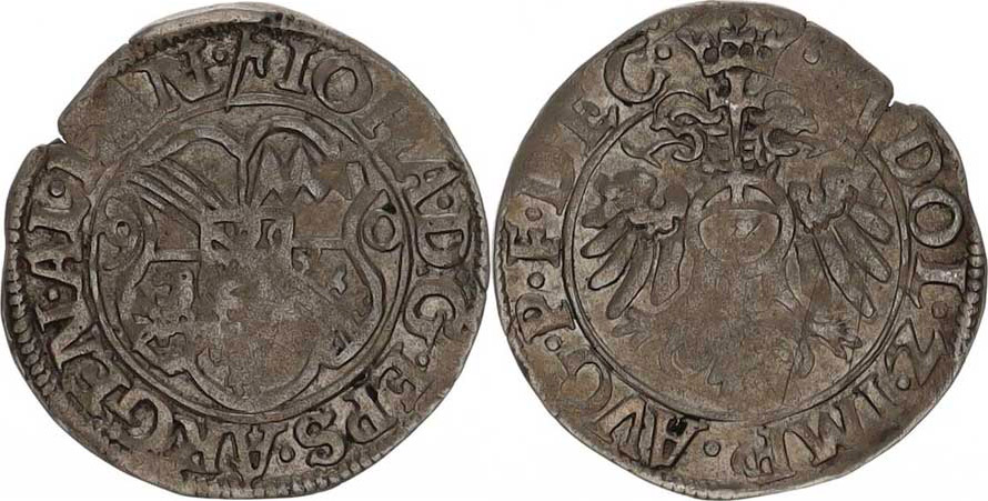 Strasbourg - biskup., Joh.Manderscheid (1569-1592), 1/2 Batzen 1590 - s tit. Rudolfa II. Sa 1949/95