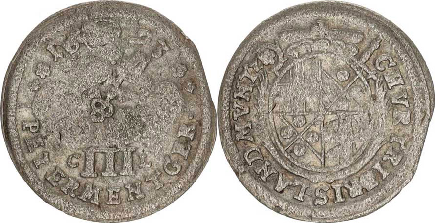 Trier - arcibisk., Johann Hugo (1676-1711), III Petermenger 1693 CL KM 176, mělká ražba