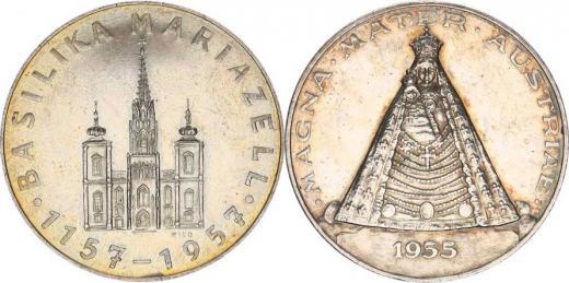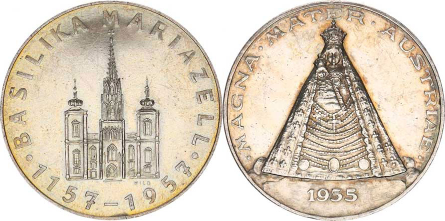 Rakousko - Maria Zell 1157 - 1957, basilika čelně, opis / Milostn í soška, opis MAGNA MATER AUSTRIAE 1955 sign.: WILD postř. bronz 33 mm 12,324 g