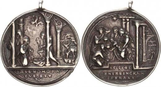 Medaile 1545, Klanění pastýřů / Klanění tří králů oboustr. sign . CW Ag litá 39 mm 17,344 g zvýšený okraj, kolmé ouško Katz 231 / WWWIII-1; Killian 5769