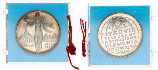 Vítkovice, Železárny a strojírny Klementa Gottwalda / 150 let 1828-1978, alegorie Ag 750 35 mm orig.etue s plombou