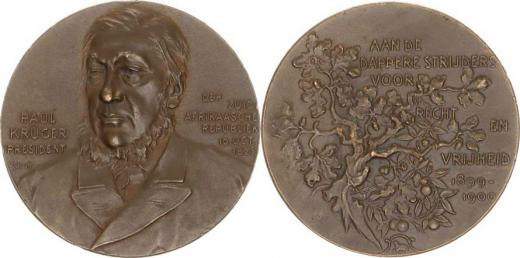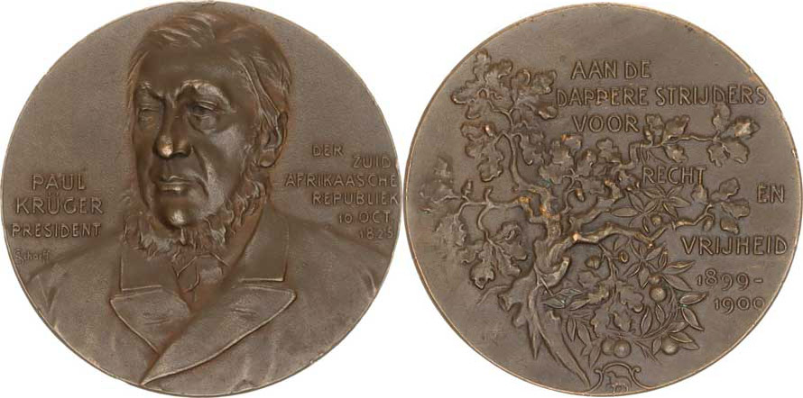 Scharff Anton (1845-1903), Paul Krüger, jihoafrický president. Poprsí čelně, nápisy / Dub, 6