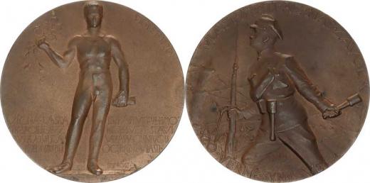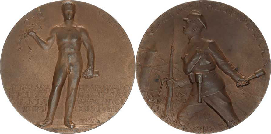 VII. slet 1920, sportovec s lipovou ratolestí a čtyřřádk. nápis / Voják s puškou a granátem, opis bronz 50 mm 55,55 g BO. 117