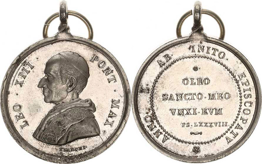 Vatikán - Papežský stát, Leo XIIII. - medaile k I. roku episkopátu (1888), Poprsí papeže z
