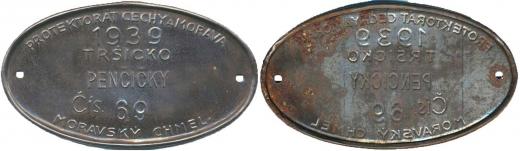 Tršicko - Penčičky 1939, moravský chmel čís. 69 - Protektorát Čec hy a Morava plech. ovál 138x78 mm 2x dírka pro úchyt
