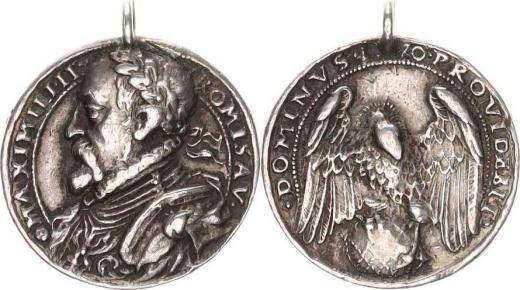Medaile 1570, na válku proti Turkům, - poprsí císaře zleva, opis / stojící orel na zeměkouli, opis a datace Ag 24 mm 7,293 g "R", ouško