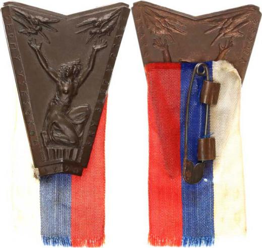 Praha - Sedmý všesokolský slet 1920 sign.: Ladisl. Toman bronz lichoběžník 36x49 mm +bílo-modro-červená stužka Novák VII.02