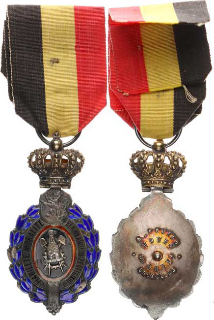 Medaile "HABILETÉ MORALITÉ", s korunkou II. stupeň stříbrná /za 25 let služby v zemědělství nebo průmyslu/ Rv: ražebna A. FON SON / FOURr / du GIUVt / BRUXELLES, nep. vypadlý smalt