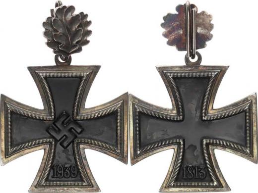 "Železný kříž 1813-1939" se svastikou - II. třída, na závěsu du bový list "sběratelská replika" 46,85 g
