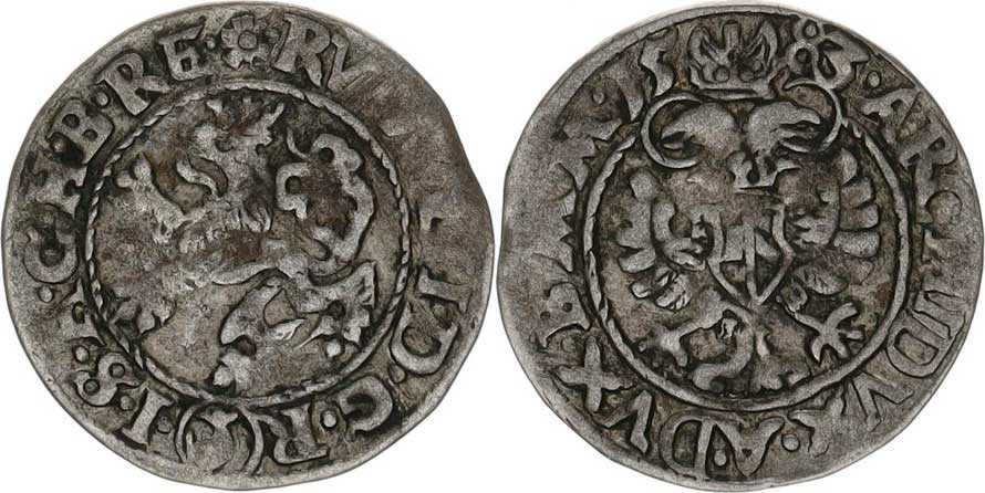 Bílý groš 1583, Jáchymov-Kádnerová "R" opis: H.B.RE / M. M. 1,91 g, mír. nedor.
