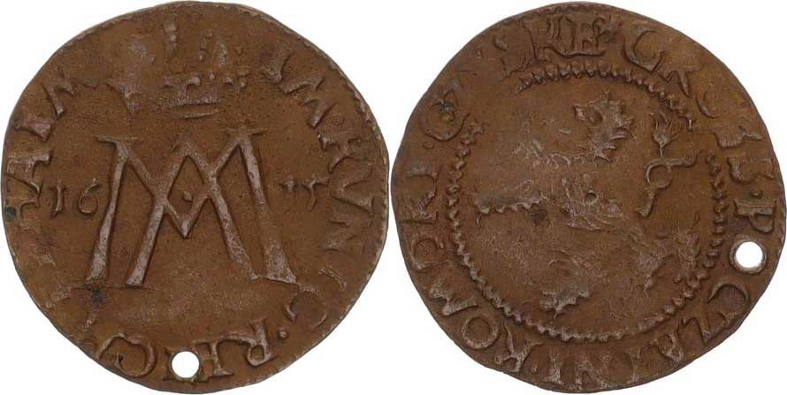 Početní groš 1615, Kutná Hora-Šmilauer 1,826 g jako Mrš. 1 21 var. za CZESKE je rosea, dírka, tém.