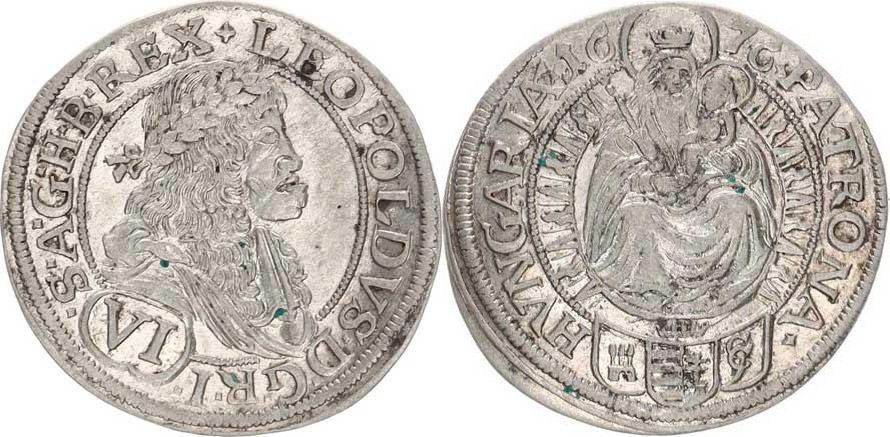Leopold I. (1657-1705), VI kr. 1676 CG, Bratislava-Cetto jako Husz. 1459 var.: za REX