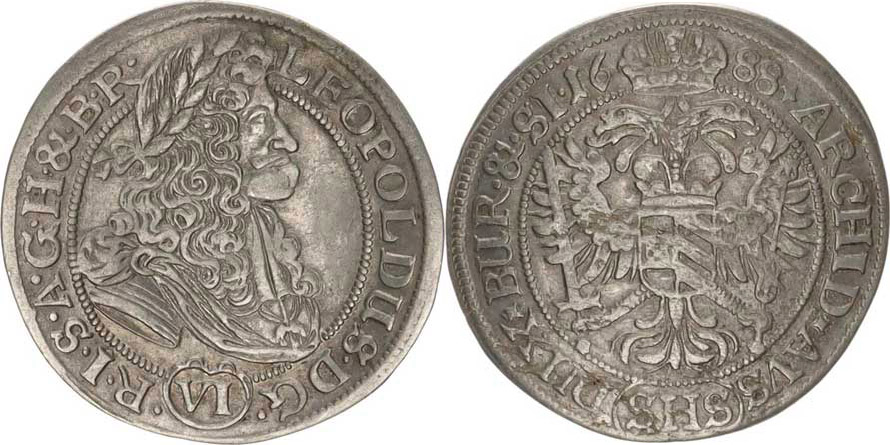 Leopold I. (1657-1705), VI kr. 1688 SHS, Vratislav-Hammerschmidt MKČ neuvádí ! - jak