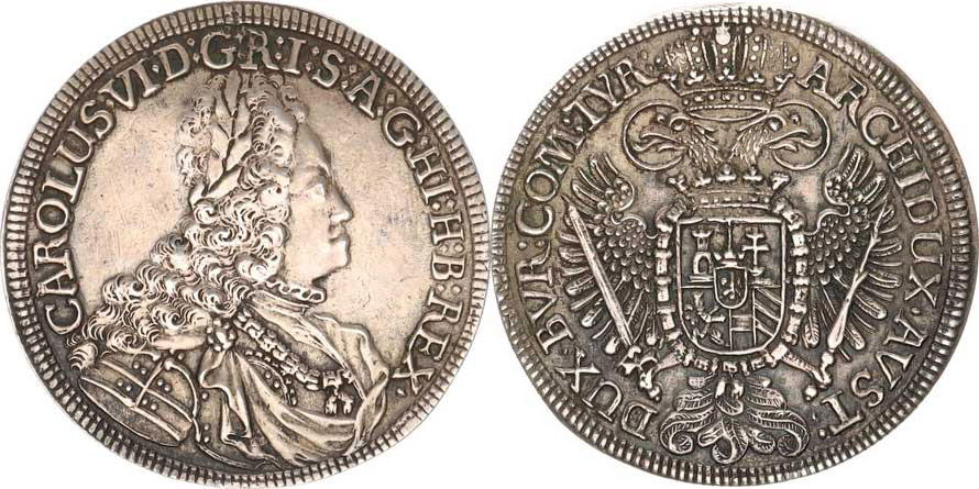 Karel VI. (1711-1740), 1/2 Tolar b.l., Tyroly Hall Her. 484-485; KM 1547 "R"