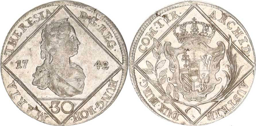 Marie Terezie (1740-1780), 30 kr. 1742 b.zn., Vídeň Her. 758; Eyp. 20