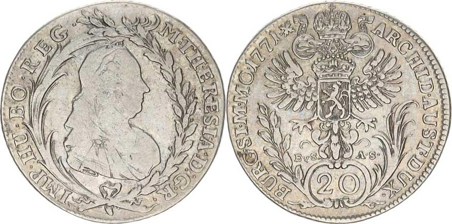 Marie Terezie (1740-1780), 20 kr. 1771 EvS-AS, Praha
