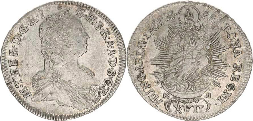 Marie Terezie (1740-1780), XVII kr. 1761 K-B, Kremnica, just., tém.