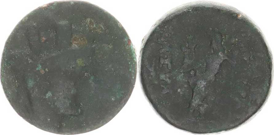Starověké Řecko, AE 17 (2. stol. př. Kr.) - Fénicie ?, Hlava bohyně Tyché / stojíc
