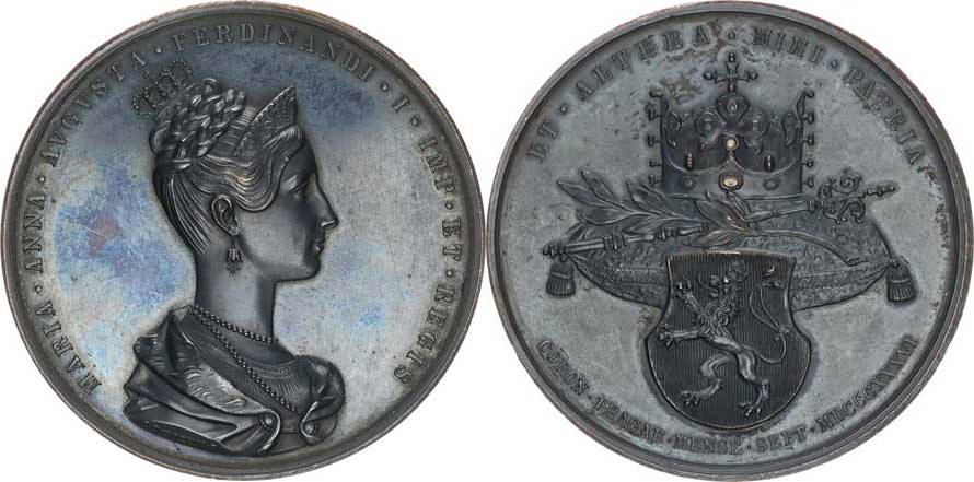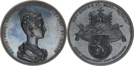 Medaile 1836 na pražskou korunovaci Marie Anny Cu 46 mm, 4,8 m m výška střížku sign.: I.D.BOEHM Nov.XIII f; Novák XVIII/H/1c