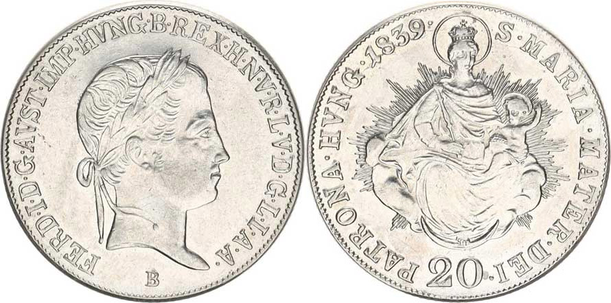20 kr. 1839 B - Madona 6,602 g