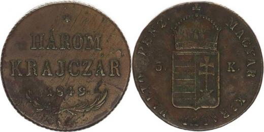 Három = 3 Krajczár 1849 NB_dr. vada stř.