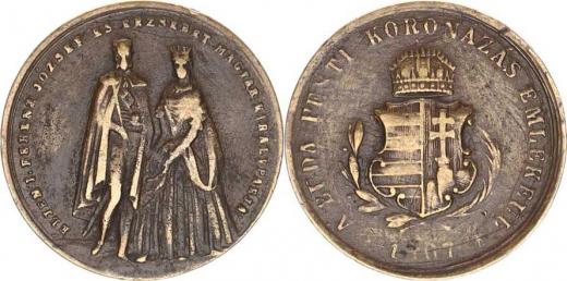Medaile na korunovaci královského páru v Budapešti 1867, Dvě pos tavy / znak mosaz 20,5 mm 3,935 g Novák XIX/D/8a