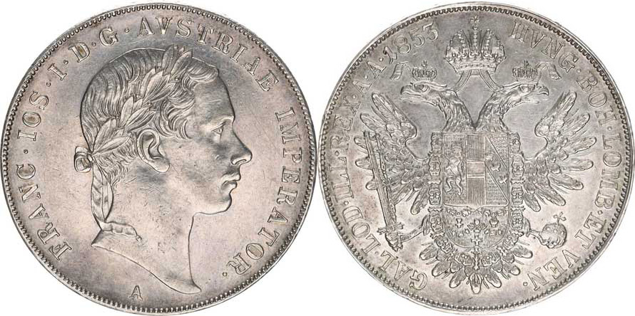Tolar konvenční 1853 A "RR" 25,981 g "krásná zach ovalost"_tém.
