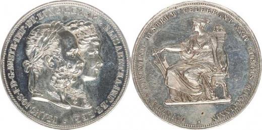 Dvouzlatník 1879 - Stříbrná svatba var.: tečka za ELISABETHA._Av. hlazen