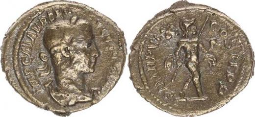 Denár, kráčející Mars zprava nese trofeje a oštěp PM TRP VI COS II PP 2,357 g
