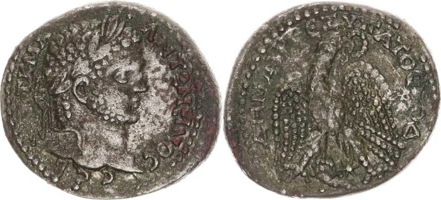 Syria-Antiochia pod Orontem Seleucis a Pieria, AR tetradrachma, Hlava cís. zprava / Stoj. orel s rozepjatými křídly s hlavou vpra vo s písmenem omega, mezi nohama hvězda 12,898 g 26-29 mm SGI 2650; B.M.C. 20.196,373;