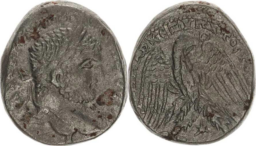 Syria-Antiochia pod Orontem Seleucis a Pieria, AR tetradrachma, Hlava cís. zprava / Stoj. orel s rozepjatými křídly s hlavou vpra vo s písmenem omega, mezi nohama hvězda 13,012 g 24-26 mm SGI 2650; B.M.C. 20.196,373;