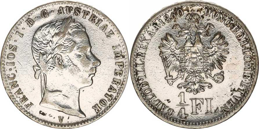 1/4 Zlatník 1860 V "R"_tém.